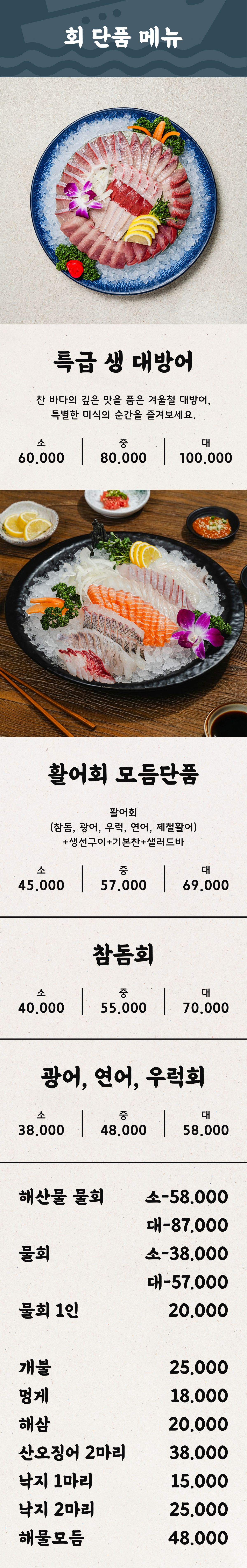 회 · 해산물 메뉴